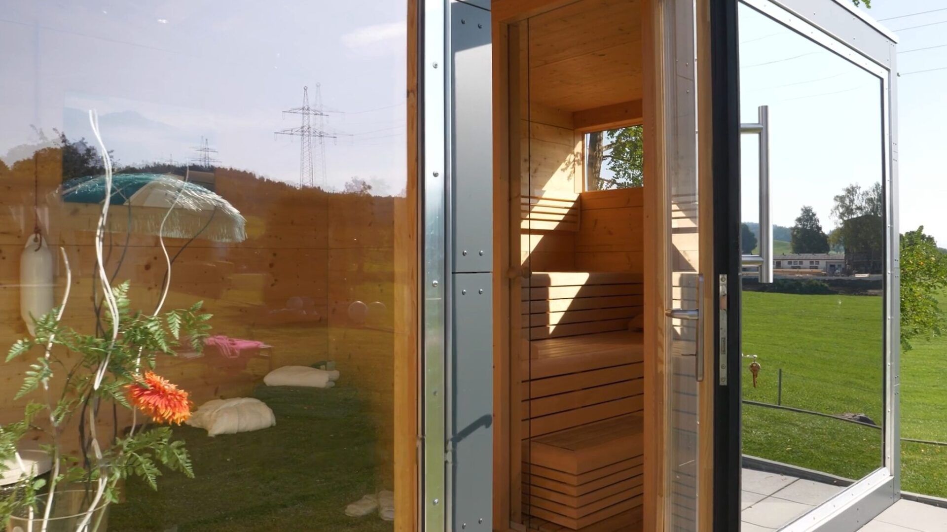 Wellness & Entspannung: Sauna Cube im Außenbereich mit Ruheraum, zwei Kamine (innen & außen), stilvolles Billardzimmer samt gemütlicher Bar im UG