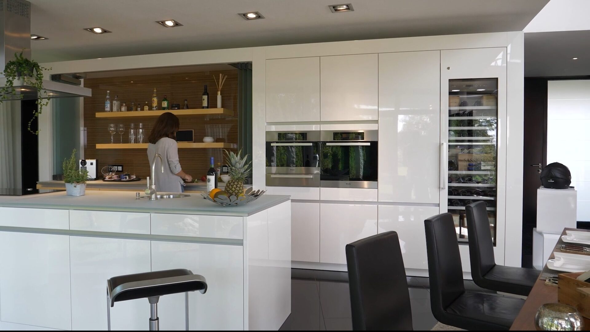 Küche: Hochwertige Leicht-Einbauküche mit Miele-Geräten, Quooker Frischwassersystem, Weinkühler