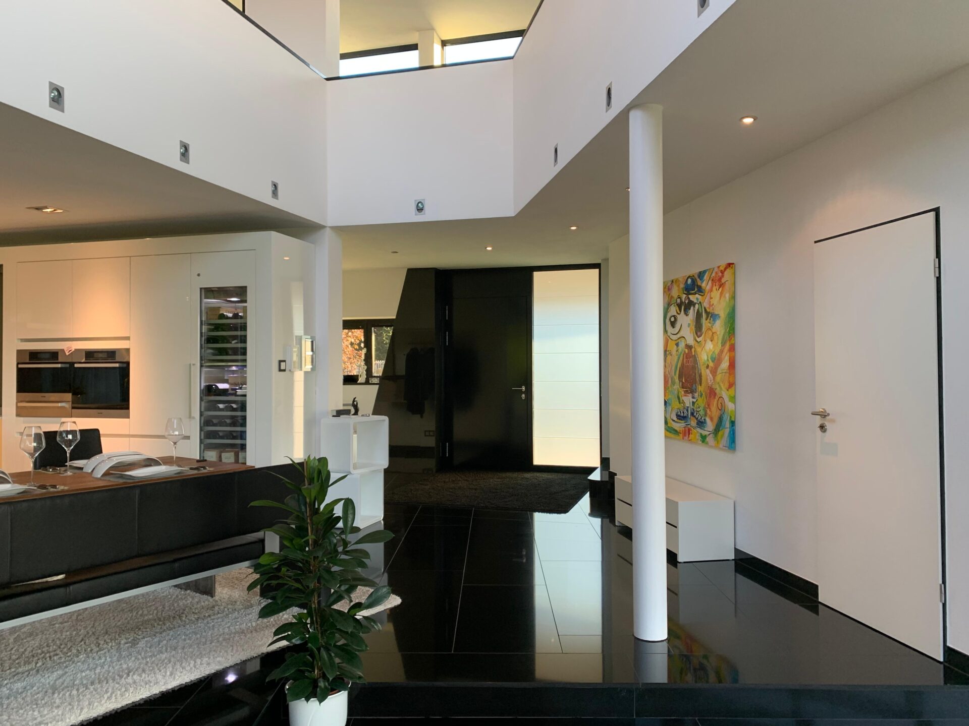 Das offene Wohnkonzept mit großen Fensterfronten und beeindruckendem Luftraum samt Galerie im Obergeschoss sorgt für lichtdurchflutete Räume und ein einzigartiges Wohngefühl. Hochwertige Materialien wie Granit- und Nussbaumparkettböden unterstreichen den eleganten Stil. Zwei Kamine – einer im Wohnbereich, einer auf der Terrasse – schaffen eine einladende Atmosphäre zu jeder Jahreszeit.