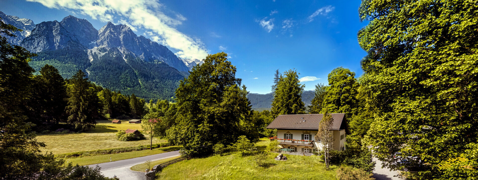 Das historische Landhaus liegt in Grainau, einem staatlich anerkannten Luftkurort im oberbayerischen Landkreis Garmisch-Partenkirchen, direkt am Fuße der Zugspitze.