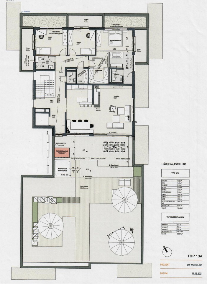 Das absolute Highlight ist zweifelsfrei die 229 m² große Süd-Westterrasse mit Sauna, Whirlpool, Bar und vielen weiteren Details.