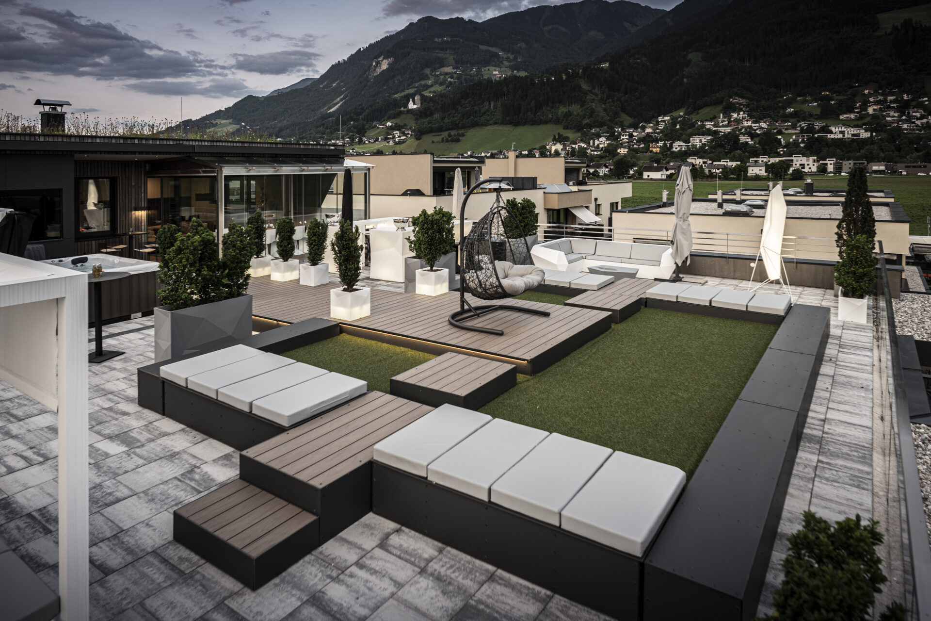 - Sauna und Whirlpool sowie Bar und Loungebereich auf der Dachterrasse