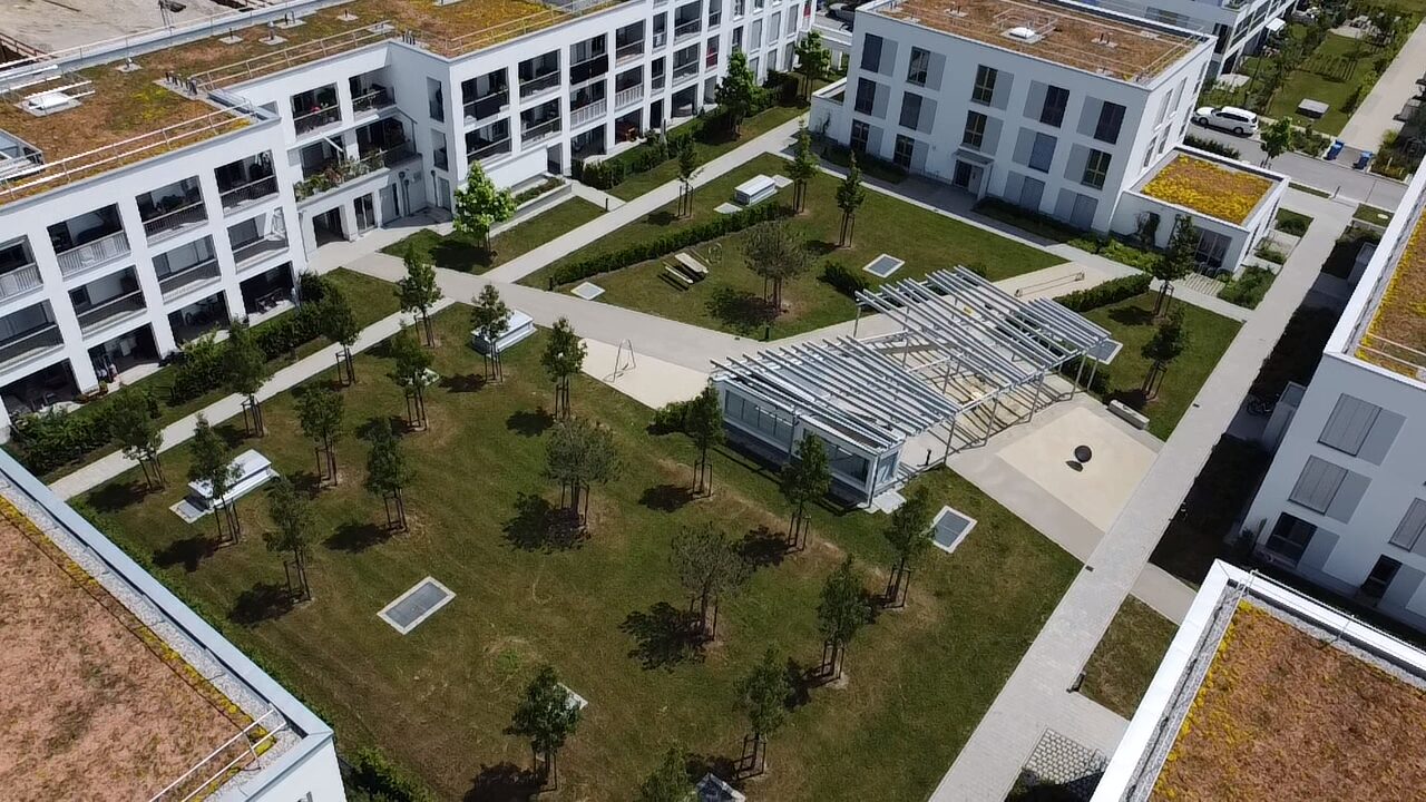 Die Wohnung liegt in einem neu erschlossenen Wohnquartier in Kirchheim bei München, nur wenige Fahrminuten östlich der Landeshauptstadt. Die Umgebung ist geprägt von gepflegten Neubauten, viel Grün und einer angenehmen Wohnatmosphäre. Einkaufsmöglichkeiten, Nahversorgung, Schulen und Freizeitangebote befinden sich in unmittelbarer Nähe. Der Anschluss an den öffentlichen Nahverkehr ist hervorragend – die S-Bahn ist schnell erreichbar, ebenso die Autobahn A99.