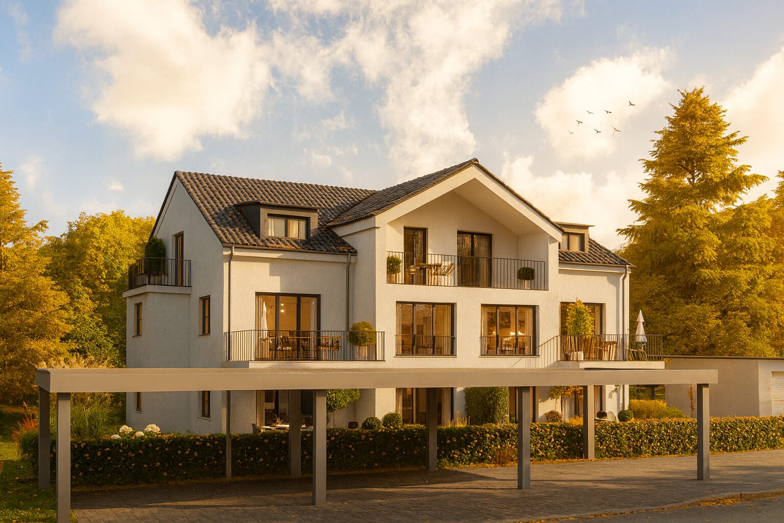 Die Carport-Stellplätze werden mit einer Vorbereitung für Wallbox-Anschlüsse ausgestattet. Dadurch können Sie bei Bedarf jederzeit unkompliziert eine Ladestation für Ihr Elektrofahrzeug installieren – entweder direkt beim Einzug oder auch zu einem späteren Zeitpunkt.