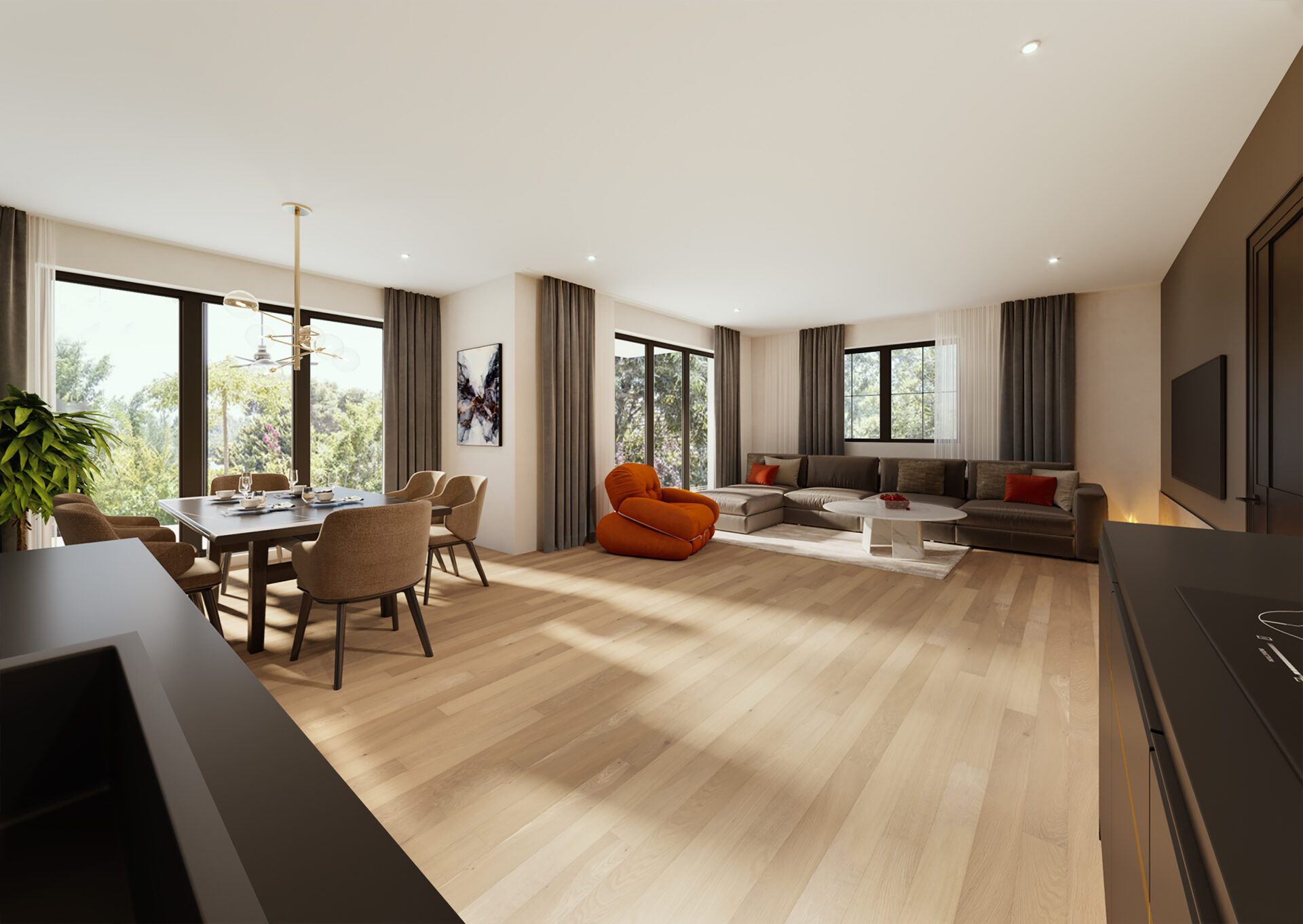 Alle Wohnungen verfügen über hochwertige Parkett- und Fliesenböden, großzügige Balkone oder private Gärten bei den Erdgeschosswohnungen. Die Käufer haben die Möglichkeit, die Boden- und Bäderausstattung nach ihren eigenen Vorstellungen zu wählen, um ihr neues Zuhause individuell zu gestalten.