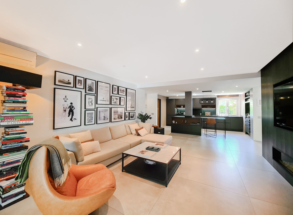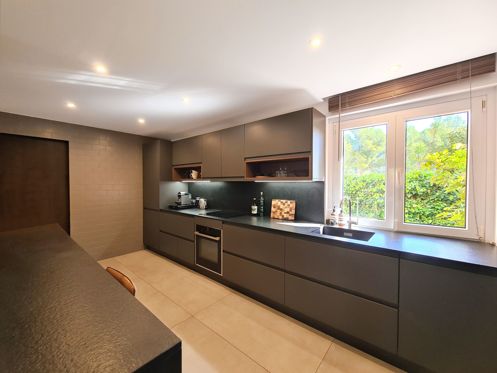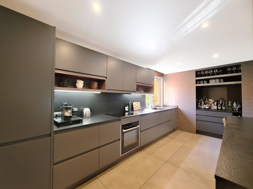 Die Wohnung wurde 2016 aufwendig renoviert und überzeugt durch höchste Bauqualität, moderne Ausstattung und großzügige Raumaufteilung. Der offen gestaltete Wohn- und Essbereich mit direktem Zugang zur privaten Terrasse bildet das Herzstück der Immobilie. Die amerikanische Einbauküche ist vollständig renoviert und hochwertig ausgestattet.