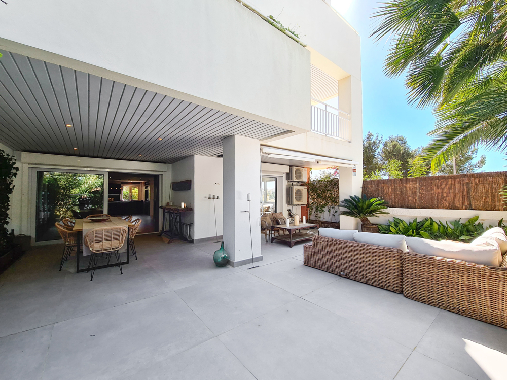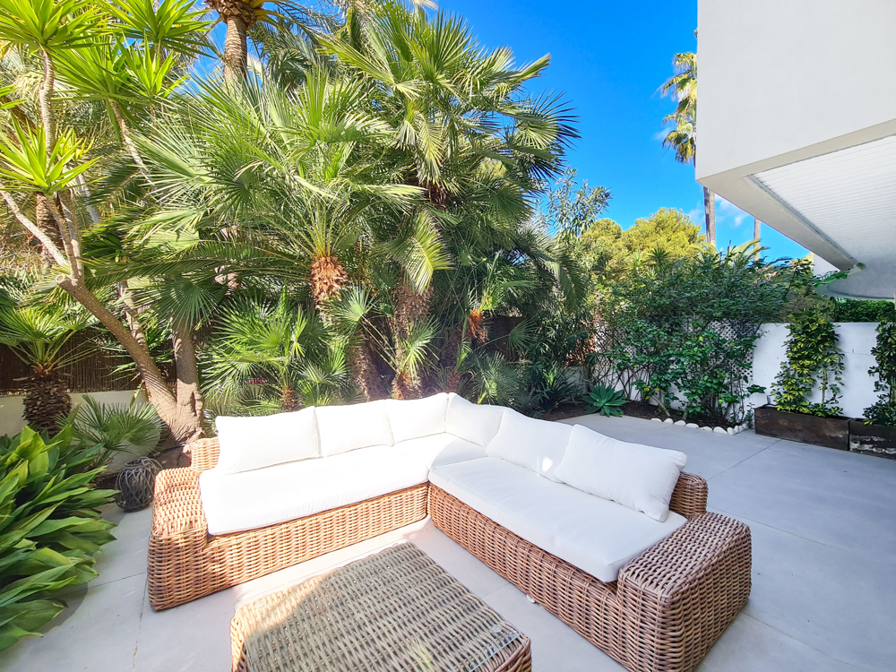Diese lichtdurchflutete Erdgeschosswohnung befindet sich in einer der exklusivsten Wohnanlagen im Umfeld des Golfplatzes Bendinat, angrenzend an das begehrte Wohnviertel Cas Catalá. Auf ca. 104 m² Wohnfläche plus 59 m² Terrasse (zur Hälfte überdacht) bietet dieses stilvolle Zuhause ein modernes, offenes Raumkonzept mit höchstem Wohnkomfort.